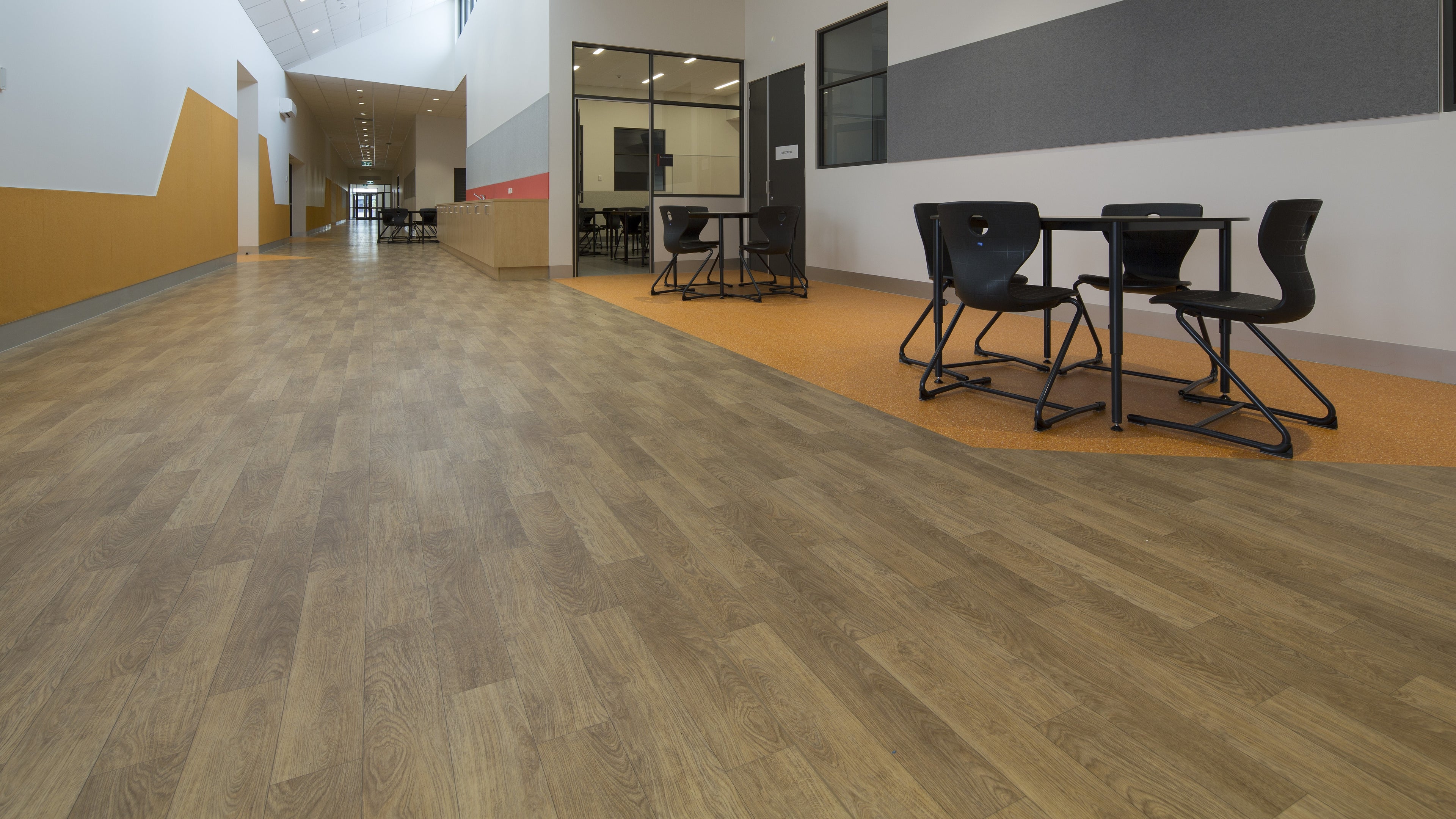 A standout feature of heterogeneous vinyl flooring is that it’s easy to clean due to its waterproof surface and minimal seams or joins. That, along with stain, scratch scruff and chemical resistance makes heterogeneous flooring the ideal choice for a range of different commercial settings.